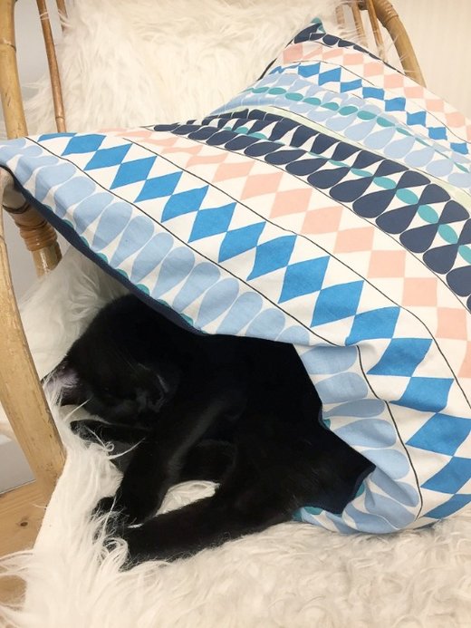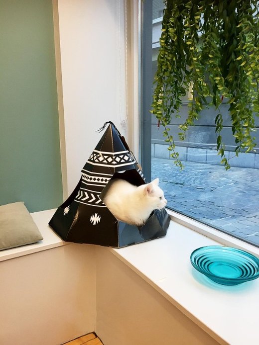 Hoe creëer je nu de perfecte schuilplaats voor je lieverd? Het moet niet altijd ingewikkeld zijn. Ze houden van droge, knusse plekken waar het warm is. Kies iets dat ingesloten is met een niet al te grote opening. Wanneer je meerdere katten in huis hebt, is het wel belangrijk dat er een verschillende in- en uitgang is. De tipi’s van Design for pussies zijn hier een goed voorbeeld van. Zo zit je kat niet gevangen tijdens een mogelijk conflict.