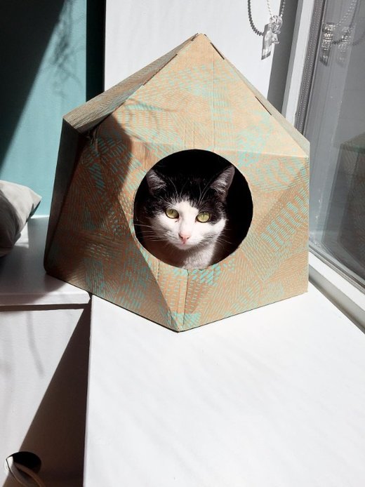 Tenslotte is het materiaal perfect voor katten. Het isoleert, waardoor het de perfecte temperatuur heeft. Geluiden van buitenaf worden gedempt. Ze liggen lekker zacht en kunnen er ook nog in bijten en krabben om er hun geur aan te geven. Zeg nu zelf: een beter huis is er toch niet?