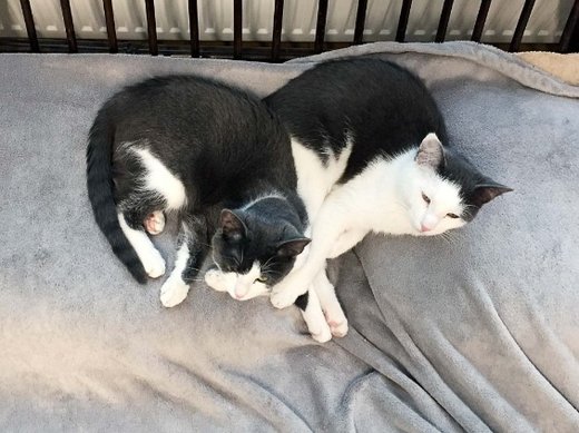 Maak de kat wijs wat je wilt, maar dit duo is het schattigste wat je maar in grijswaarden kunt vinden. Ze blenden prachtig in elkaar via hun schattige witte buikjes, maar dan zul je ze natuurlijk eerst op hun rug moeten krijgen. Je houdt ze makkelijk uit elkaar want ze hebben elk een prachtige, unieke tekening op hun kopje. Sky lijkt een schuine froufrou te hebben, terwijl Ella echt wel goed staat met haar middenscheiding.