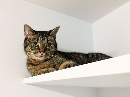 Tonnik werd samen met haar broertje Jinn afgestaan door een gezin. De poezen konden het niet zo goed vinden met de pasgeborene. Ze vluchtten uit alle situaties met onverwachts veel kabaal en begonnen zich te verstoppen. Ze beslisten met hun tweetjes dat er helaas geen plaats was voor een huilende nieuwkomer. Jinn en Tonnik belandden via het asiel in ons adoptiecafé, maar Tonnik bleek zich hier toch niet zo goed te voelen. Broer en zus werden dan opgevangen door een van onze vrijwilligers, waar Tonnik besliste dat er helaas ook geen plaats meer was voor Jinn, zij wilde liever het rijk voor zich alleen.